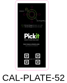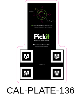 Pickit ships with a calibration plate that has special markers printed on it (below left). During robot-camera calibration, the robot shows this plate to Pickit from different viewpoints, and Pickit learns the relative position between camera and robot: