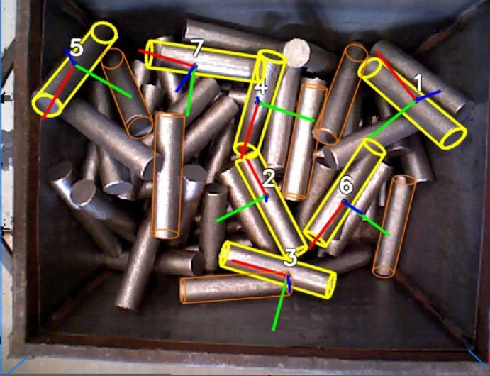 By using the cylinder model, you let Pickit optimize the detection and user experience for this specific shape. For example, Pickit will automatically make pick points symmetric about the cylinder axis to facilitate picking. A dedicated wizard will also help you to easily define the pick point of the shape.