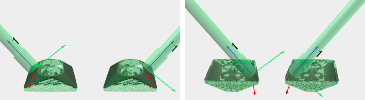 Specify pick points for models where only one part is visible at a time. This is the case for full object models taught from CAD. Below, pick points for the top (left) and bottom (right) sides of a socket are shown.