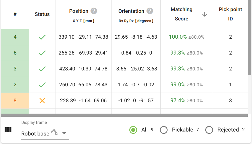 Model ID: ID of the matched model (specific to Pickit Teach).