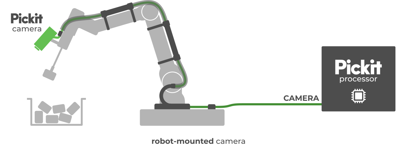 Mount the camera following the best practices and connect it to the Pickit processor according to the instructions for the camera type and mount.
