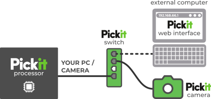 This switch should only connect to an external computer and Pickit cameras. Connecting other components may compromise its performance.