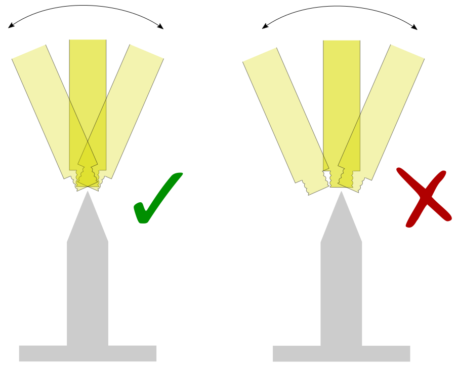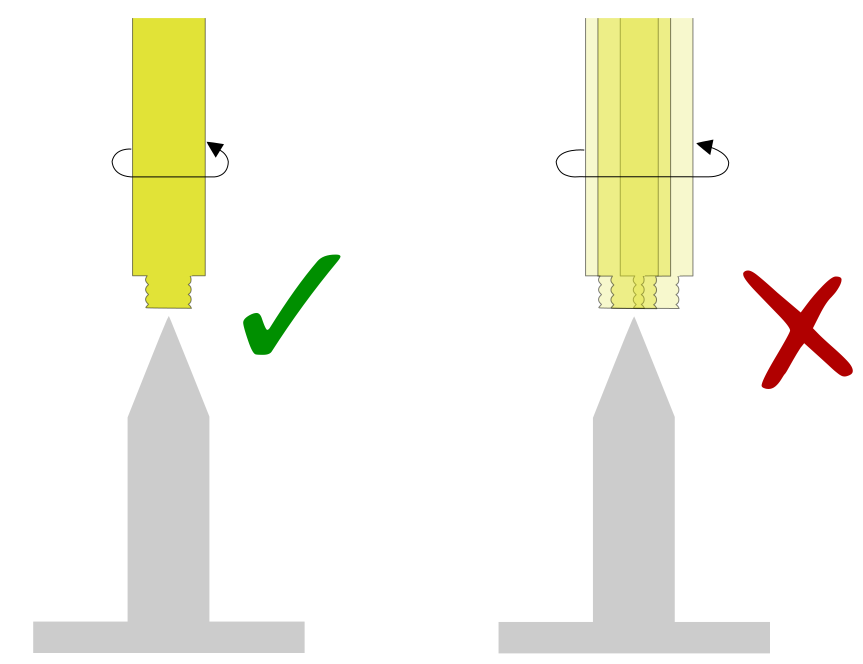 Rotate the robot around the tool frame axis pointing away from the flange. This typically corresponds to the tool Z axis. The tip of the tool should remain centered with the pointy object, and not drift visibly in any direction.
