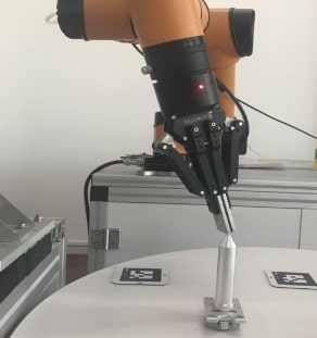 In a picking application, the robot is normally equipped with a grasping tool, like a suction cup, a magnet, a two-finger gripper, or some other type of tool. This can be seen as en extension to the robot flange, and can have any shape. In order to move to a correct position from which the tool can grasp the object, the robot program needs to know the position of the tip of the tool relative to the robot flange. This transform is commonly known as the Tool Center Point (TCP).