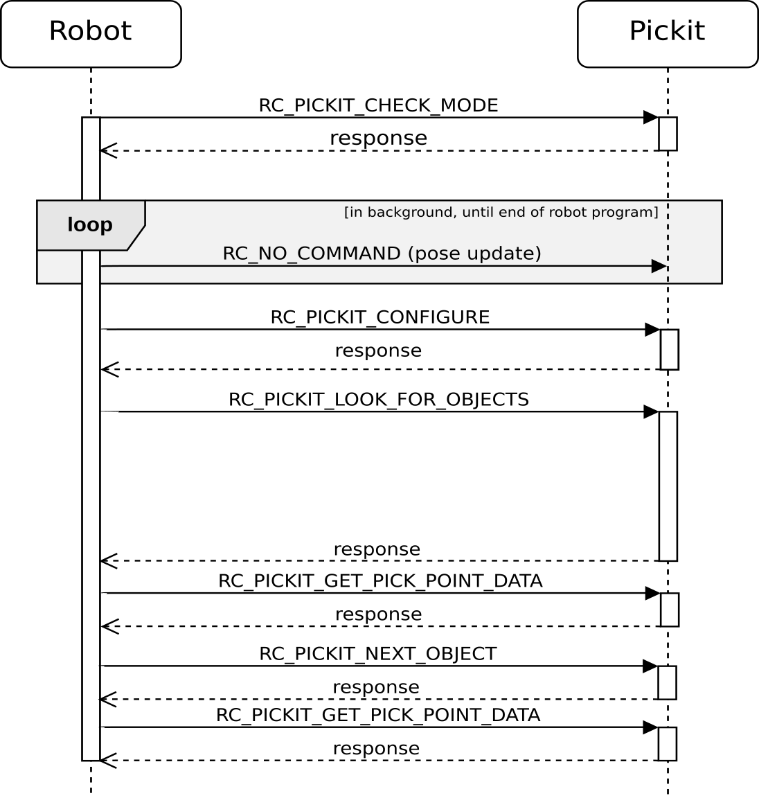 Example communication flow between robot and Pickit.
