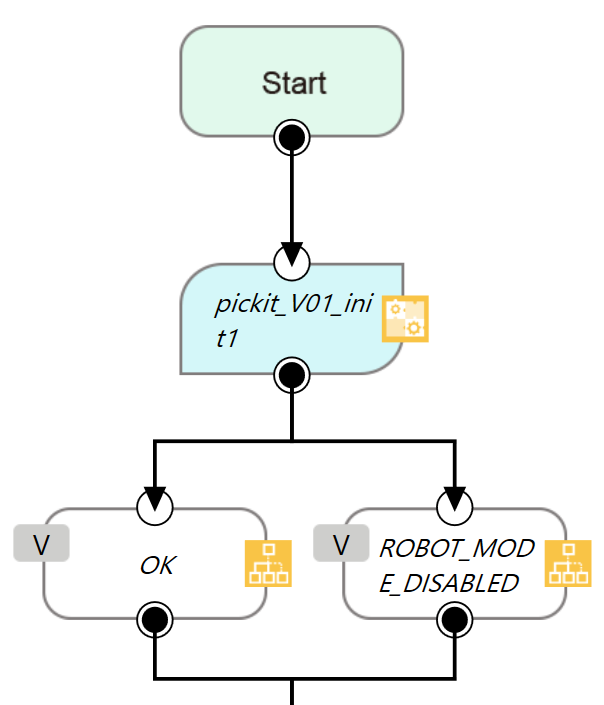 The program starts by initializing pickit with the init component. Note that since robot mode doesn’t need to be enabled to perform calibration, both exit states of the component map to the nominal program flow.