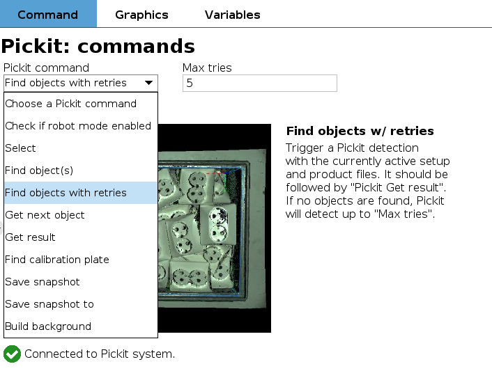 Next, navigate to the Command tab on the right panel and select an entry from the Pickit command drop-down.